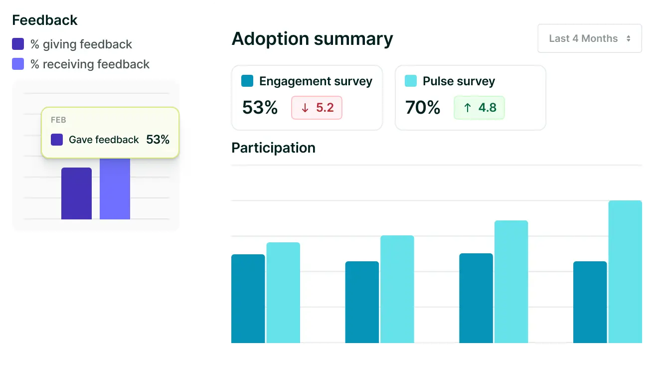 By providing insights into both employee performance and engagement metrics, Lattice's analytics software enables organizations to identify areas for improvement and implement strategies to enhance employee satisfaction, productivity, and retention.