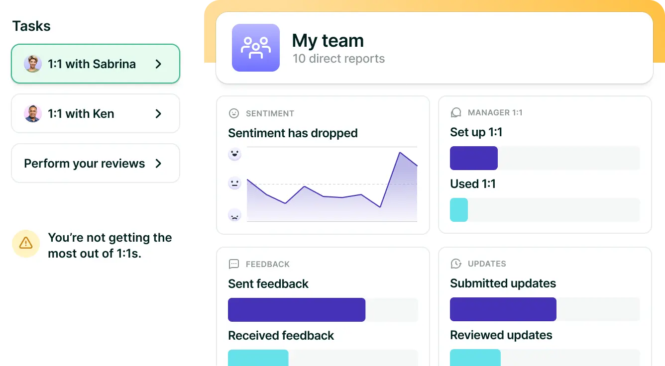 With analytics and alerts, managers have the tools they need to provide targeted support and development opportunities to their direct reports.