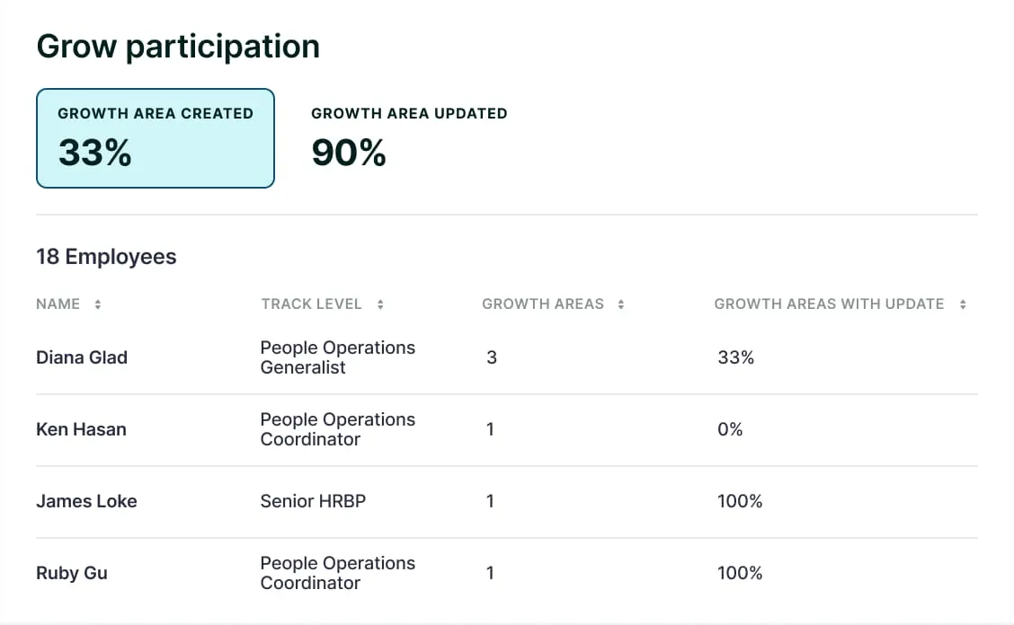 The Adoption Dashboard quantifies the success of your people programs by providing metrics on engagement and utilization of Lattice. This feature allows organizations to assess the effectiveness of HR initiatives, especially those facilitated in Lattice.