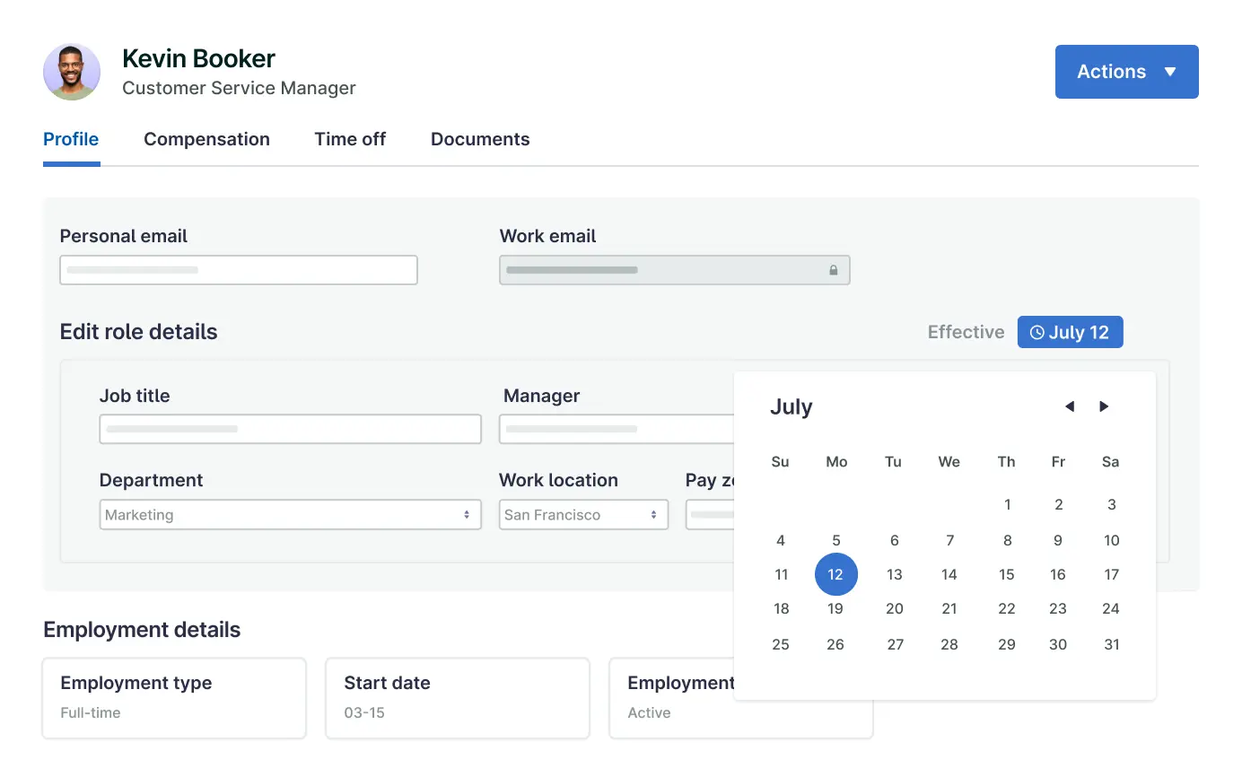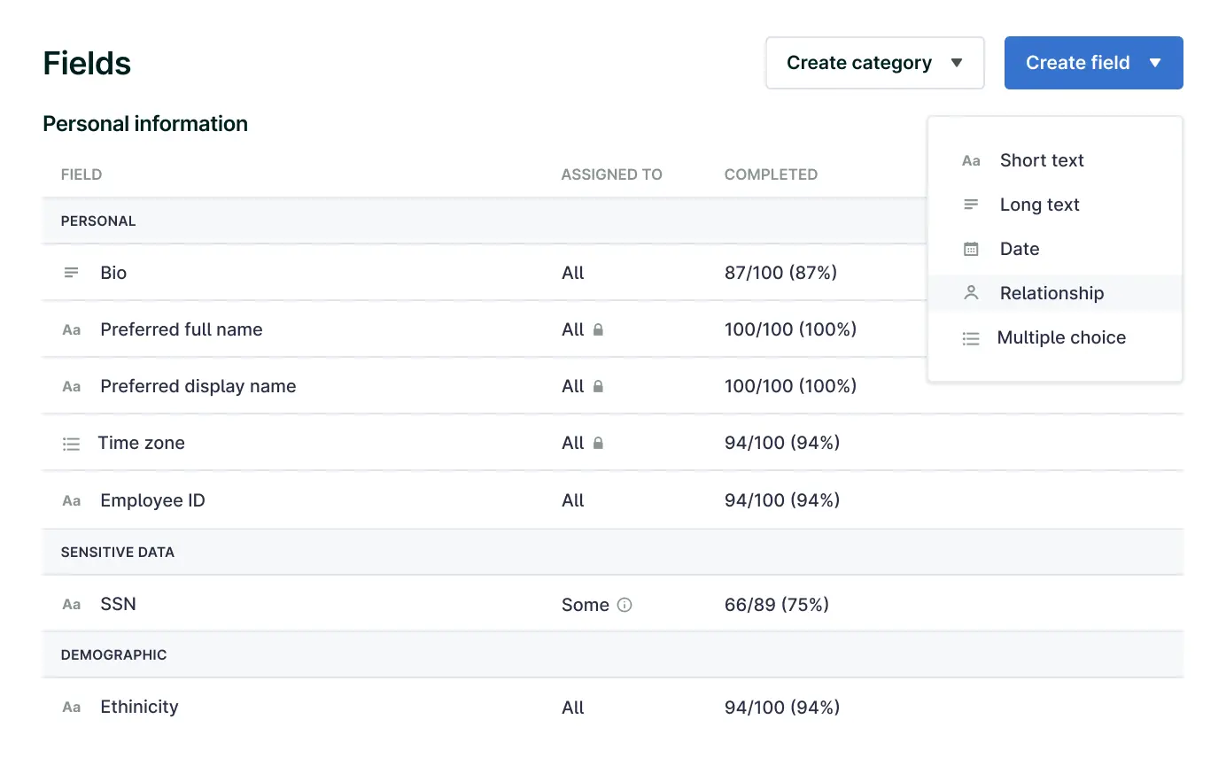 Set up custom, calculated, or conditional fields to capture the right employee info depending on a person’s country, department, or employment type for both compliance and smart decision-making.