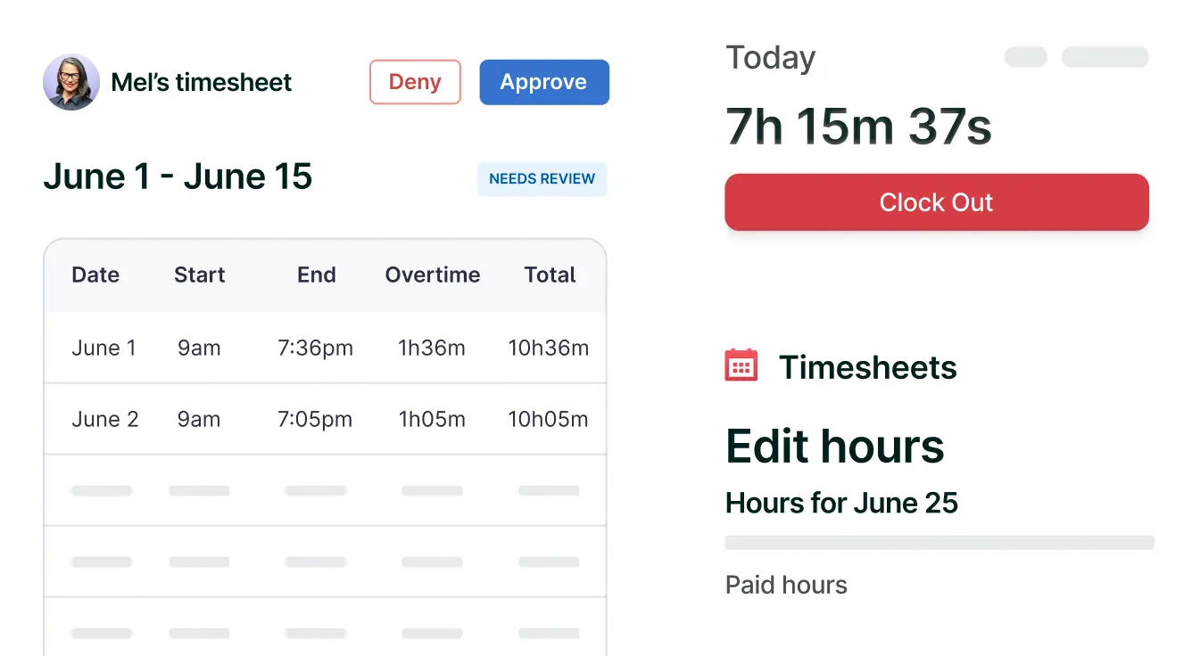 Cut down on manual data entry and errors with fast time card entry, review, and approval—synced automatically to payroll.