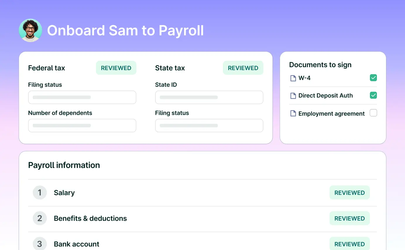 Unify your HR and payroll data to automate changes for new hires, raises, and tax adjustments — with a unified employee record, payroll information is always up to date.
