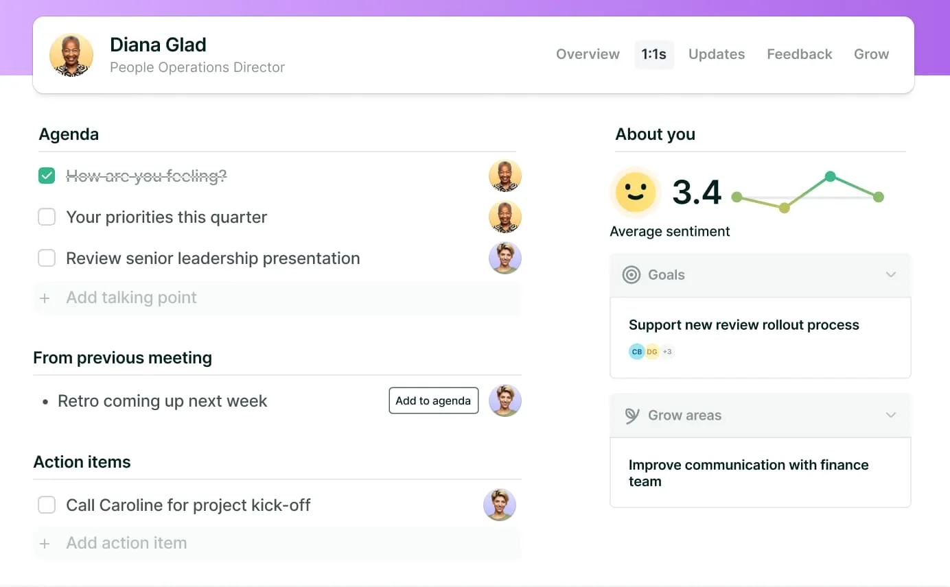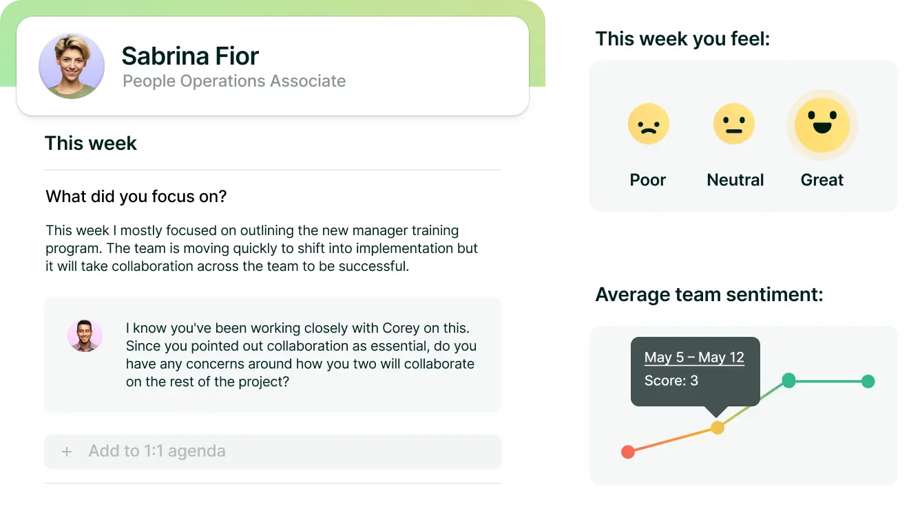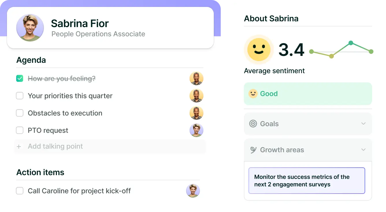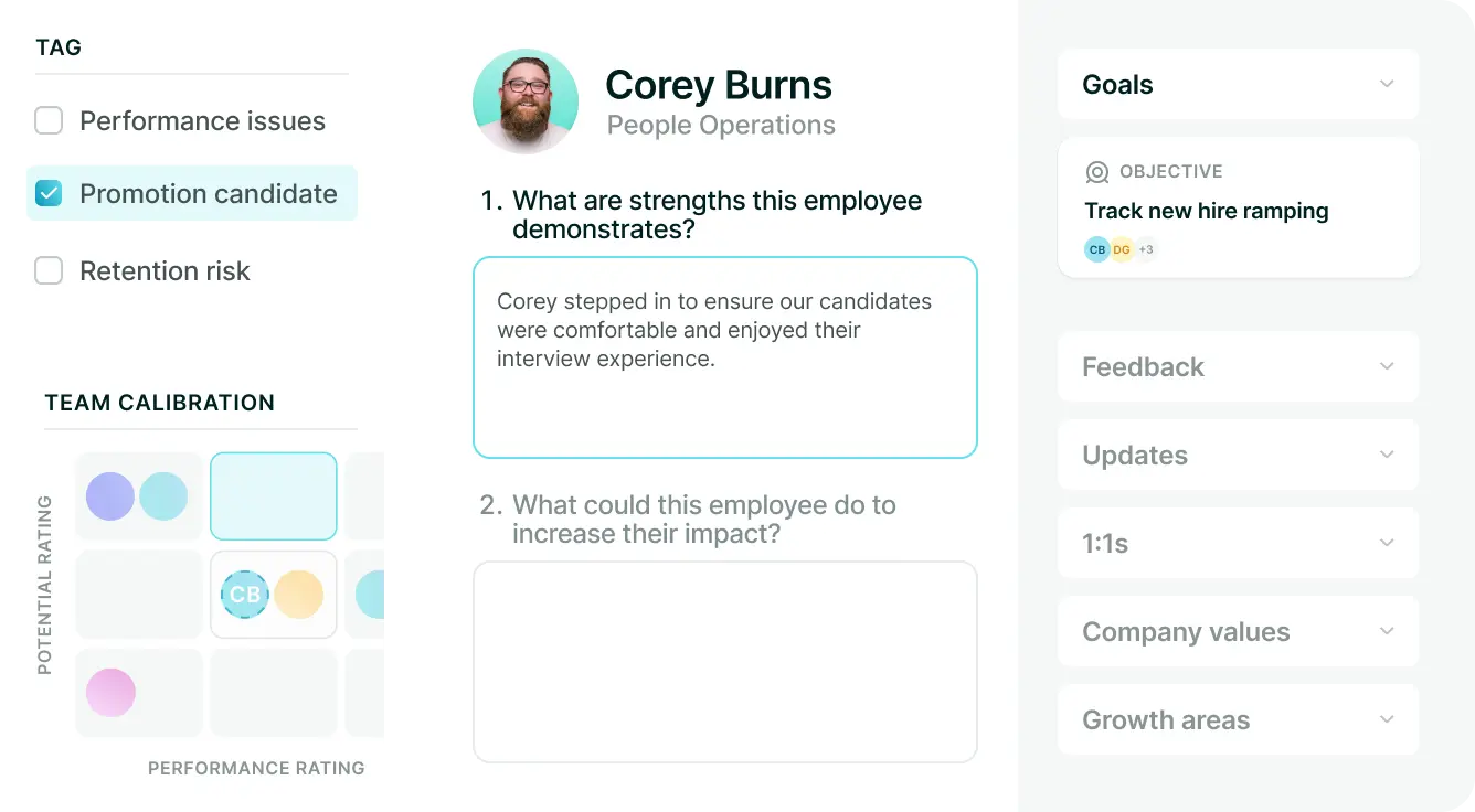 A customizable solution that people teams can tailor to build a culture of continuous feedback, growth, and accountability — improving performance across employees and managers alike.