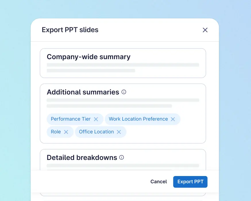 Skip the manual work with presentation-ready decks and turn engagement survey results into strategic conversations.