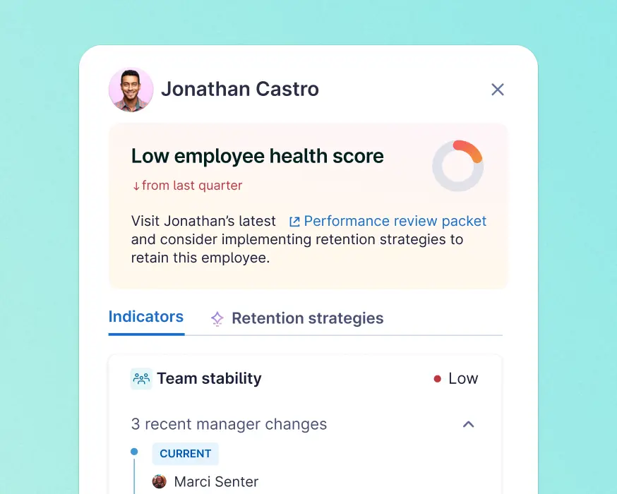 Spot turnover risk early and protect top talent. Powered by real-time signals from Lattice HRIS and Talent.