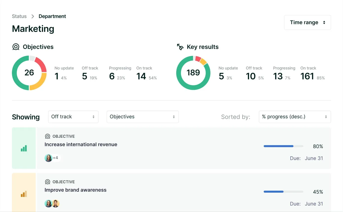 Individual, team, and department goals ladder and connect to help you track and drive key business outcomes.