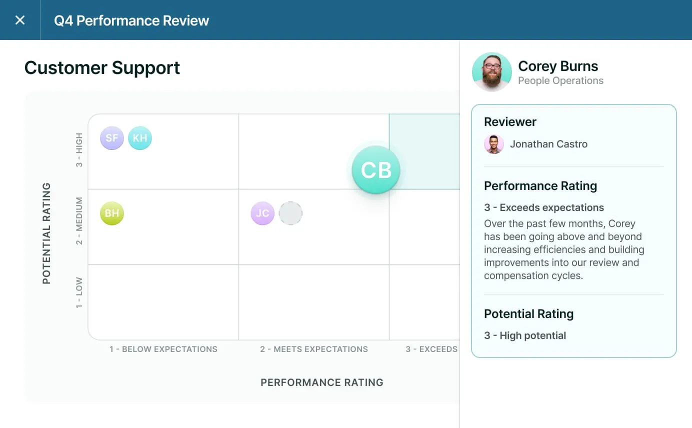 Lattice performance and engagement data to show how each employee measures up in the categories that matter most to your company — from leadership and potential to empathy and engagement.